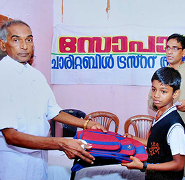 ‘Sopanam’ Charitable trust at Azhikode is a beacon light guiding and helping people. Its message of love and kindness kindles hope in the desperate minds of the poor patients, bedridden and ailing in the surrounding Villages. ‘Sopanam’ has been emitting its light and helping the needy patients since its inception in 2007. All these years, It provides help to the needy, old aged people, education for poor children, funds for good causes, and all kinds of social services like health camps, public awareness programmes etc. Its selfless service has won plaudit from all kinds of people in the community.